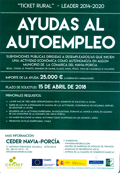 07/03/2018Subvenciones para desempleados que inicien una actividad económica como autónomo en algún Municipio de la Comarca del Navia-Porcía