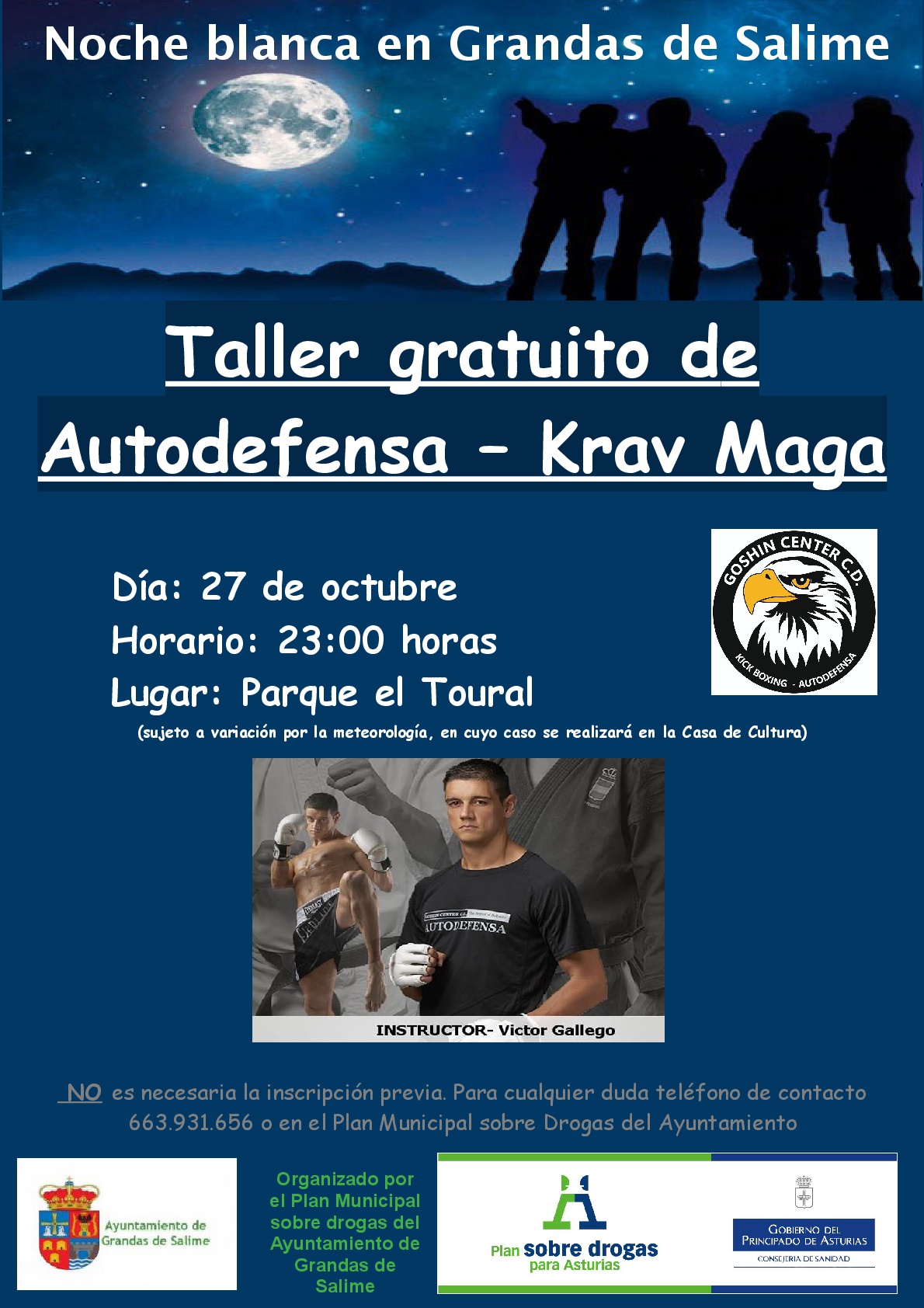 El sábado 27 de octubre a las 23.00 horas, se impartirá el Taller Sobre Técnica de Defensa “Krav Maga”, en el Parque de Grandas (si las condiciones meteorológicas no lo permiten se realizará en la Casa de Cultura)
